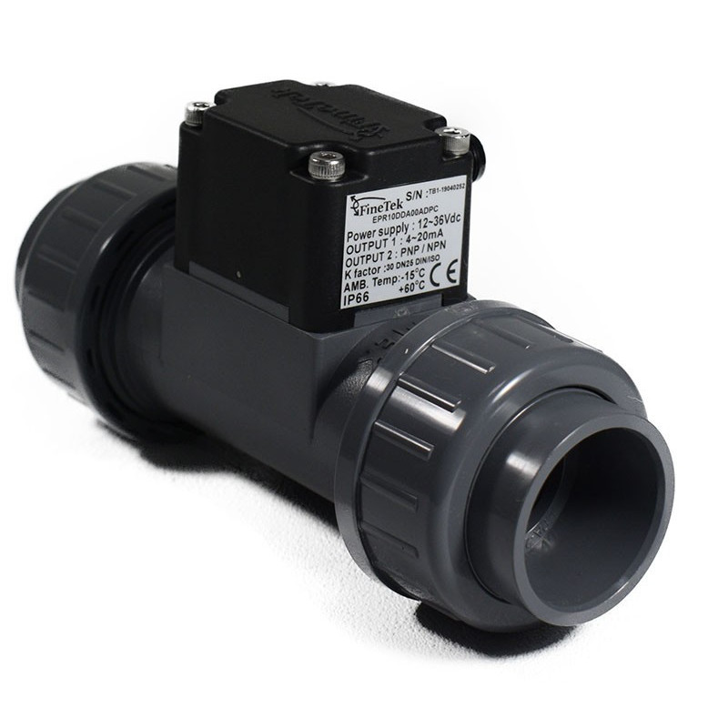 Medidor de flujo Finetek serie EPR, con salida a pulso y 4 a 20 mA.