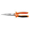 Por tener punta larga, se utiliza mucho en trabajos eléctricos y de telefonía. Su mandíbula tiene espacio para corte de alambre y espacio con dientes para agarrar objetos y mantenerlos firmes. La herramienta perfecta para usted, que trabaja en la industria o en talleres mecánicos.