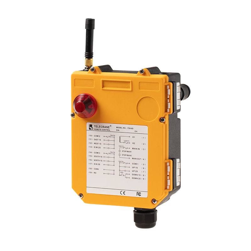 El telecomando F24-10, es de funciones subir, bajar, este, oeste, norte, sur más 4 funciones extras que puede ser en simple o doble velocidad. Este producto considera un solo emisor y un solo receptor.