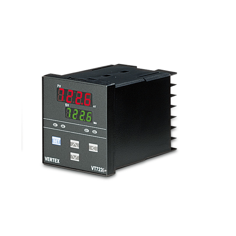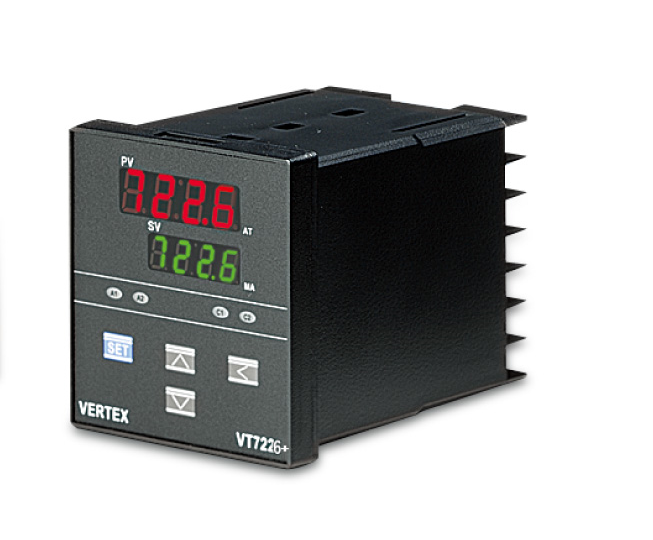 - El Controlador VT-7226 de formato 72 x 72, posee dos alarmas de salida, control PID tipo Fuzzy mejorado y puede trabajar con una variedad de sensores de temperatura lo cual lo hacen adaptable a cualquier requerimiento.