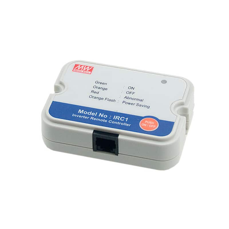 - IRC1 / IRC2 / IRC3 es la unidad de control y monitorización utilizada para la serie de inversores. Puede decodificar la señal RS-232 enviada por Serie de inversores y display a través de contadores digitales. IRC1 / IRC2 / IRC3 también puede encender / apagar el inversor de forma remota que hace el control básico más fácilmente.